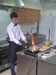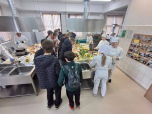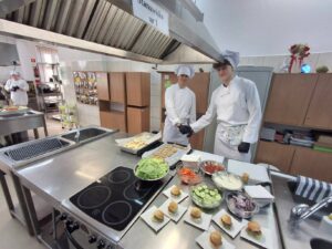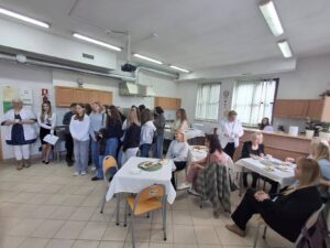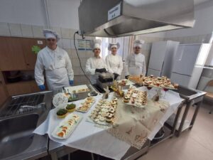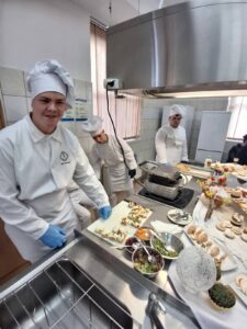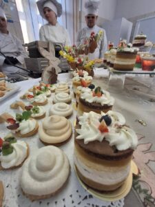 Nie mniej emocji dostarczyły pracownie branży gastronomicznej. Już od progu unosił się tam apetyczny zapach przygotowywanych potraw. Uczniowie prezentowali swoje umiejętności kulinarne, przygotowując m.in. hamburgerki oraz różnego rodzaju przekąski typu finger food. Na odwiedzających czekały także pięknie przygotowane minitorciki, deserki porcjowe, drobne ciasteczka oraz gofry z różnorodnymi dodatkami. Szczególną uwagę przyciągała prezentacja pod hasłem „Zdrowie na talerzu – karoten, chlorofil, antocyjany”, podczas której można było dowiedzieć się, jak ważną rolę odgrywają te składniki w naszym organizmie i jak wykorzystać je w codziennej kuchni. W pracowni cukierniczej odbywały się również pokazy dekorowania słodkości w ramach „Atelier dekoracji cukierniczych”, a widowiskowe live cooking pozwalało obserwować proces przygotowywania potraw niemal jak w profesjonalnej restauracji.
