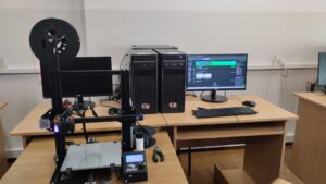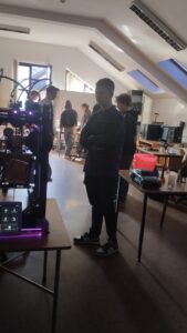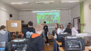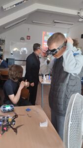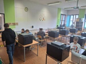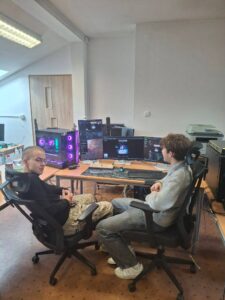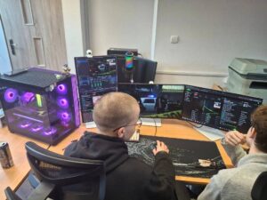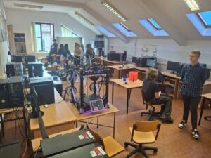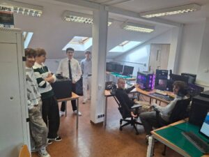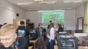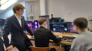 W pracowniach informatycznych odwiedzający mogli przenieść się do świata nowoczesnych technologii i kreatywności. Jedną z najbardziej oryginalnych atrakcji była wirtualna wycieczka po szkole przygotowana w świecie Minecraft – wielu uczniów z zainteresowaniem odkrywało znane miejsca w zupełnie nowej, cyfrowej odsłonie. W trakcie wydarzenia prowadzony był również streaming na żywo z Dnia Otwartego, dzięki czemu atmosfera szkolnego święta mogła dotrzeć także do osób obserwujących wydarzenie w internecie. Goście mogli zobaczyć, jak powstaje muzyka tworzona online, a także zapoznać się z projektami przygotowanymi przez uczniów – od programów komputerowych po różnorodne inicjatywy technologiczne. Wszystko to pokazywało, jak szerokie możliwości daje nauka na kierunku technik informatyk.