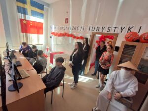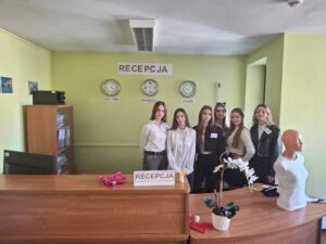 Dużym zainteresowaniem cieszyły się pracownie związane z branżą hotelarsko-turystyczną. W szkolnej recepcji można było poczuć się niemal jak w prawdziwym hotelu. Uczniowie prezentowali scenki z pracy recepcjonisty, opowiadali o swoich wycieczkach oraz zachęcali gości do udziału w quizach i zabawach. Odwiedzający mogli także spróbować swoich sił w szybkim kursie eleganckiego składania hotelowych ręczników czy nauczyć się wiązać krawat i apaszkę hotelową – elementy, które na co dzień są ważną częścią pracy w hotelarstwie. Wielu gości chętnie robiło sobie pamiątkowe zdjęcia przy specjalnie przygotowanej ściance VIP. Z kolei w innej sali można było odbyć niezwykłą podróż przez kulturę Chin podczas prezentacji zatytułowanej „Smok, jedwab i herbata”, która przybliżała także kierunek technik organizacji turystyki i pokazywała, jak fascynujący może być świat podróży.